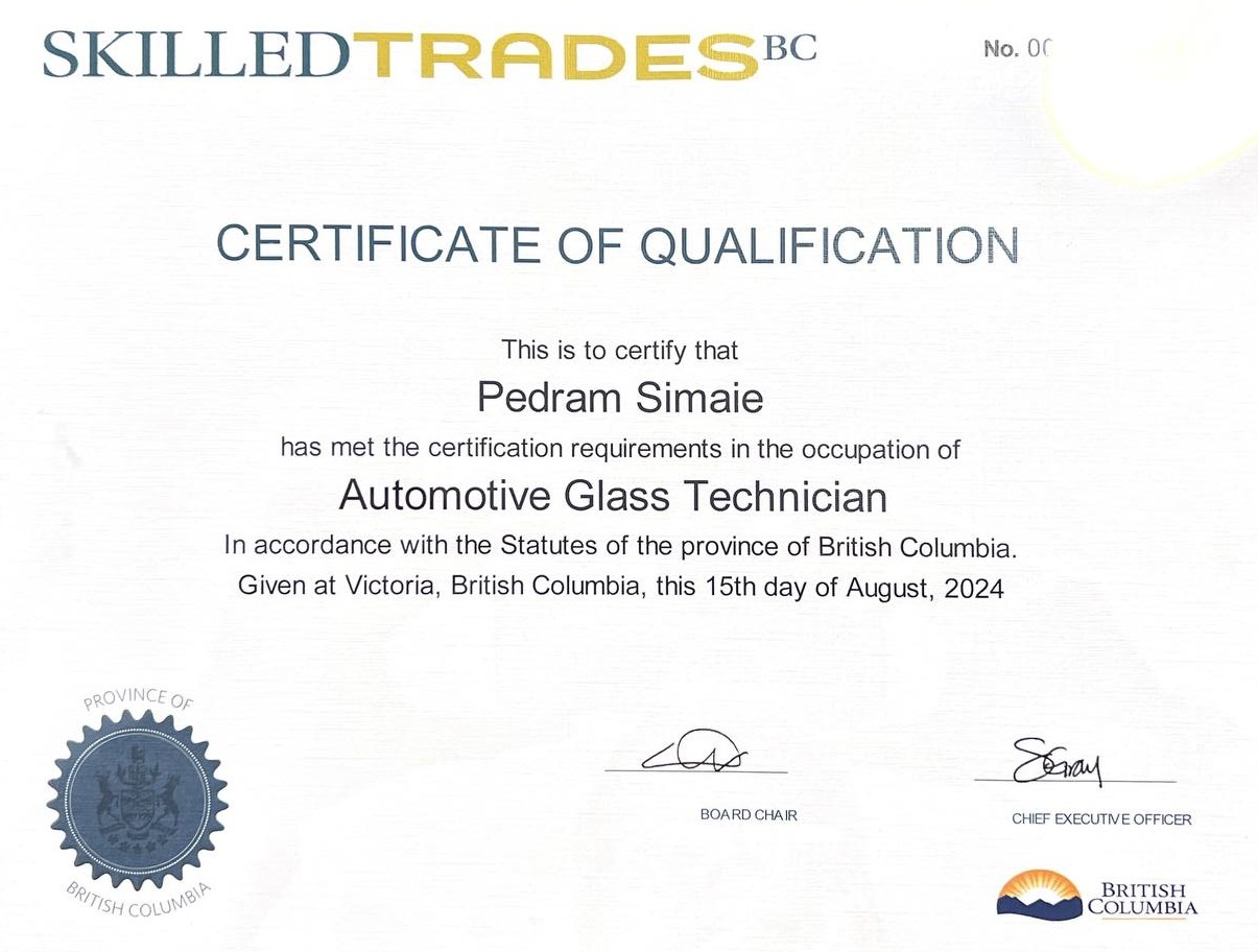 At BC Auto Glass, our greatest asset is our team. Each technician holds industry-leading certifications, ensuring every repair and replacement meets the highest standards of safety, precision, and quality.